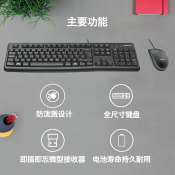 罗技(Logitech)MK120 键鼠套装 有线键鼠套装 办公键鼠套装 电脑键盘 笔记本键盘 联想全尺寸 黑色 |