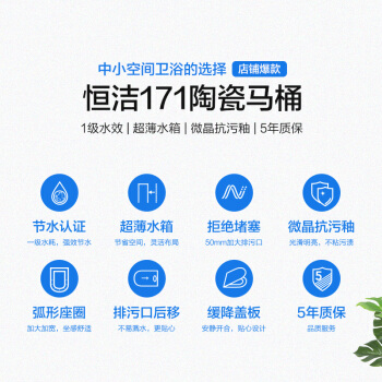 恒洁(HEGII)马桶 节水防臭 虹吸式 速冲除污连体坐便器HC0171PT0E(坑距305mm) |
