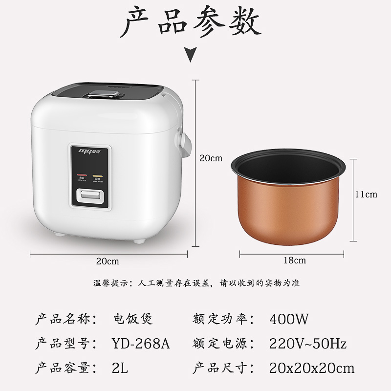 2L大容量家用电饭煲【不锈钢内胆/白色】 |