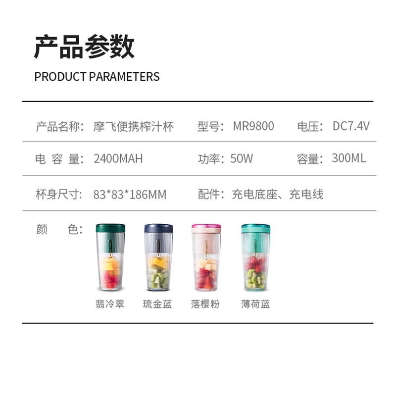 摩飞新品 榨汁杯家用水果迷你小型果汁杯电动便携式炸果汁机无线榨汁机【PCTG/落樱粉】 |