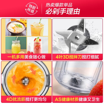 美的(Midea)料理机家用 多功能双杯榨汁机可果汁搅拌研磨辅食WBL25B26(李现推荐) |