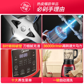 美的(Midea)破壁机高温熬煮加热破壁料理机 家用研磨器 绞肉馅机果汁机榨汁机婴儿辅食机WBL1022S |