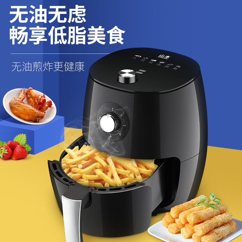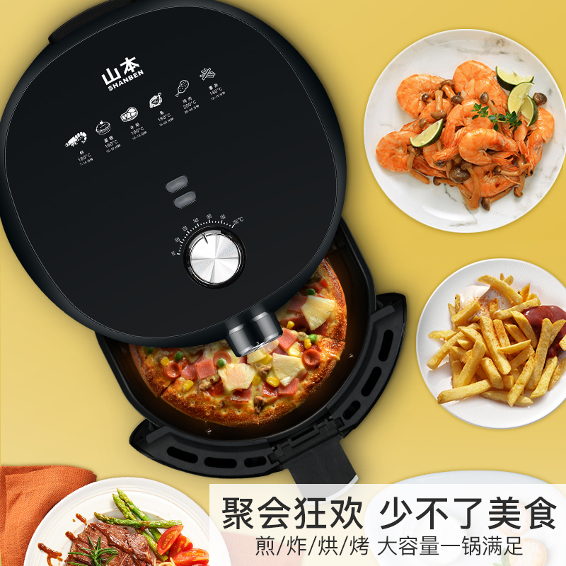 山本空气炸锅家用3.5升大容量无油烟电炸锅S2101【PP/黑色】 |