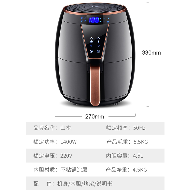山本空气炸锅4.5升智能液晶大容量炸锅6828【PP/黑色】 |
