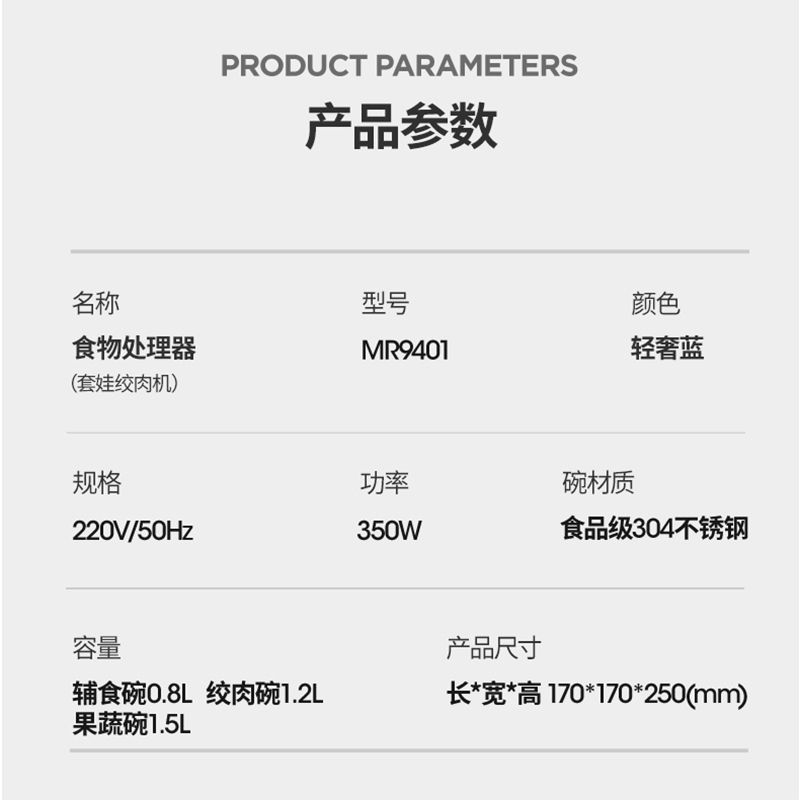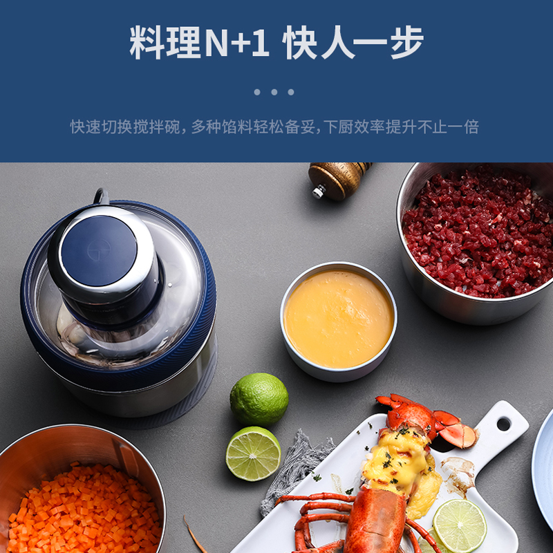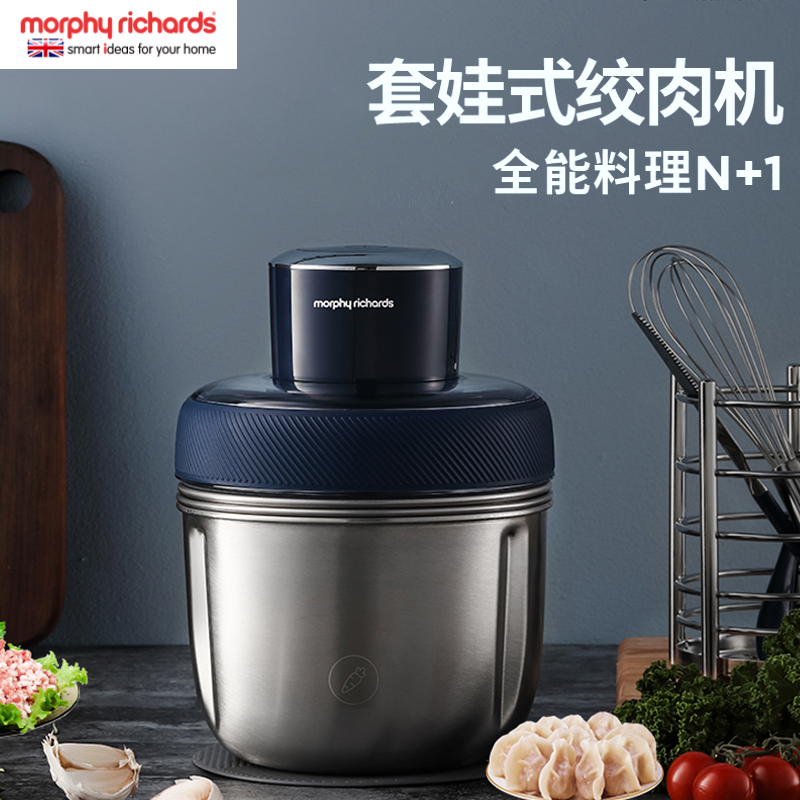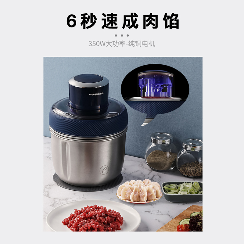 摩飞绞肉机家用电动小型多功能碎菜绞馅料理机不锈钢打肉馅搅拌机【不锈钢/轻奢蓝】 |