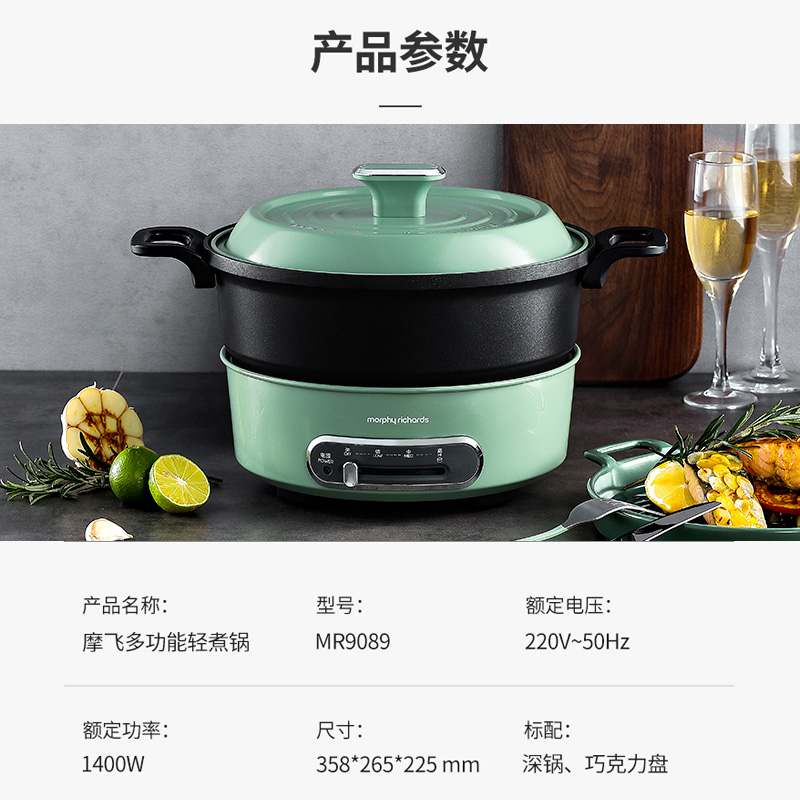 英国摩飞多功能料理锅家用小圆锅魔飞网红电烤锅炉一体小型电火锅【ABS/绿色】 |