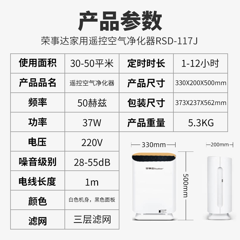 荣事达家用遥控空气净化器【100%塑料/白色】 |