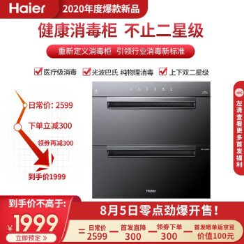 海尔(Haier)消毒柜 嵌入式 100L 光波巴氏消毒 冷餐杀菌 二星级 第四代消毒碗柜家用ZQD100F-EB03 |