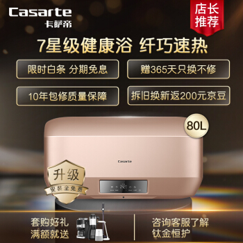 卡萨帝(Casarte)80升电热水器家用 钛金恒护系统 纤巧小体积 10倍大水量 净水洗 天沐CEC-80MAX3(U1) |
