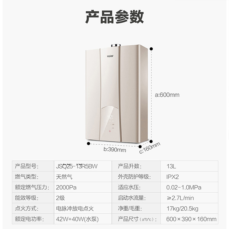 Haier/海尔 JSQ25-13R5BW 零冷水 三管大水量 双感恒温 低压启动 天然气【不锈钢/金色】 |