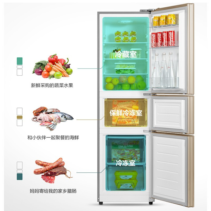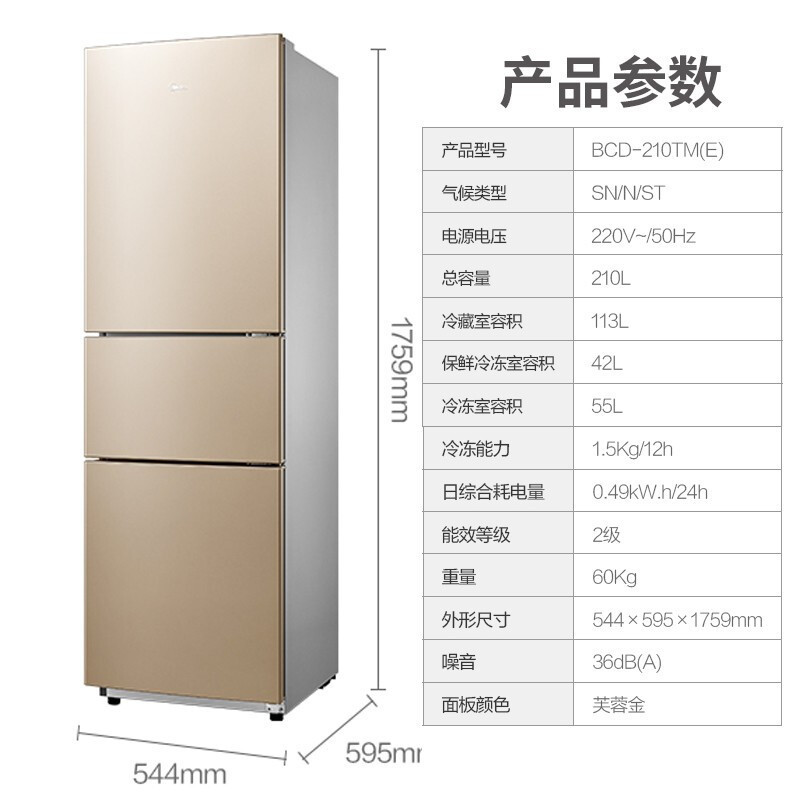 美的(Midea)BCD-210TM(E)三门冰箱直冷家用大容量电冰箱冷藏冷冻节能静音【冰箱/金色】 |