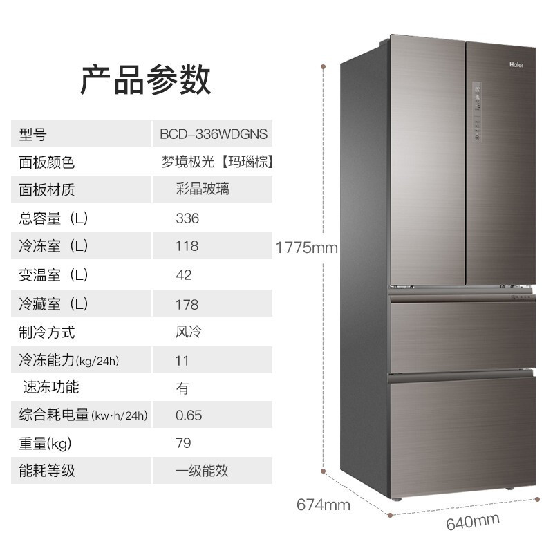 Haier/海尔 BCD-336WDGNS法式多四开门大冰箱家用一级能效变频风冷无霜【钢化玻璃/梦境极光】 |