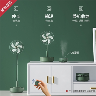 edon爱登 风扇E908电风扇家用静音遥控台式充电空气循环扇伸缩折叠【加湿器款】可摇头+定时+遥控+加湿【ABS材质/绿色】 |