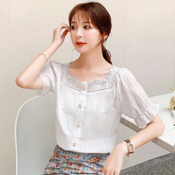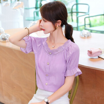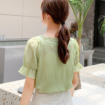 昱樱衬衫女时尚雪纺衫女夏装新款小个子学生泡泡袖韩版潮流短袖t恤短衣服小衫上衣欧洲站衬衣女 浅绿色 此码勿拍.请拍自身对应码数 |
