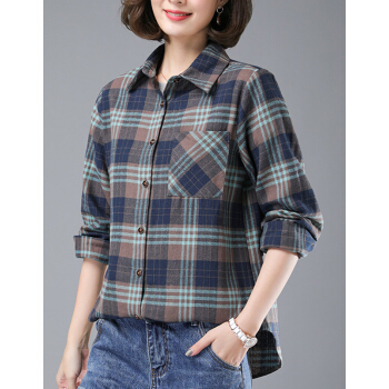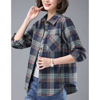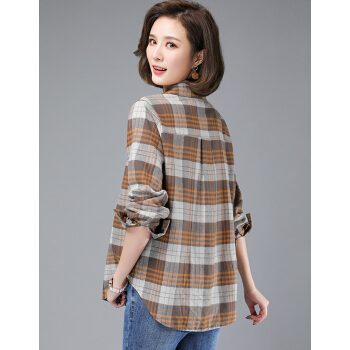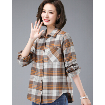 婪澈衬衫女女装夏季新款韩版显瘦时尚韩版休闲中年女士大码宽松衬衣潮格子衬衫女长袖 卡其色 请拍正确尺码 |