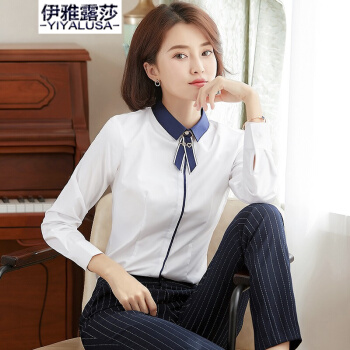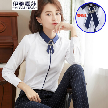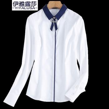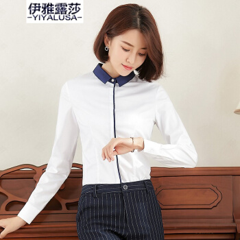 伊雅露莎衬衫女长袖棉质衬衣女士防走光扣商务通勤职业装面试工作服寸衫924 单件白色衬衫 S |