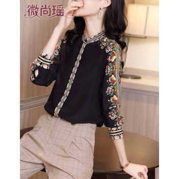 微尚瑶衬衫女秋季新款复古港风印花长袖衬衫女气质优雅设计感小众系扣开衫女上衣7008 黑色 请拍正确尺码 |