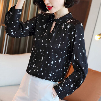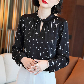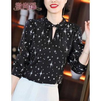 微尚瑶衬衫女秋季新款复古娃娃领长袖星星印花女衬衣潮时尚减龄气质优雅镂空小衫女7000 花色 请拍正确尺码 |