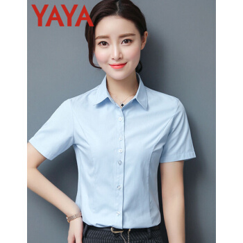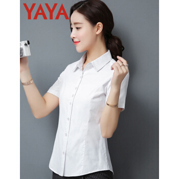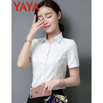 鸭鸭服饰(yaya)衬衫女夏季新款女装短袖职业装女士上衣韩范百搭修身纯色衬衣 白色 请选择正确尺码 |