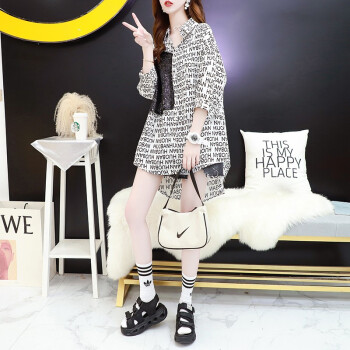 小赖猴字母印花五分袖衬衫女中长款夏装新款宽松设计感休闲亮片衬衣 白色 均码 |