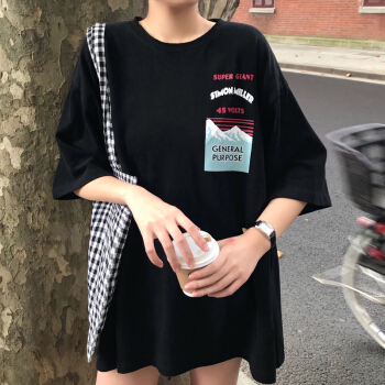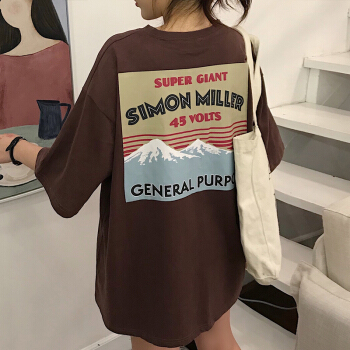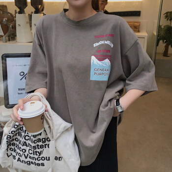娇诗茹欧货网红ins短袖t恤女韩版宽松bf洋气打底衫早春半袖蹦迪上衣 深灰色 M |