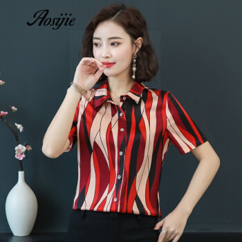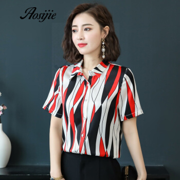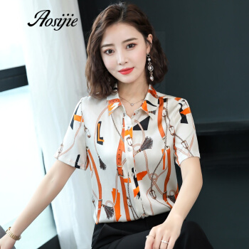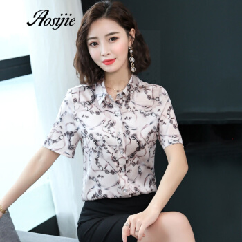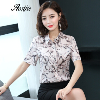 Aosijie轻奢品牌女装真丝碎花衬衫女夏装新款重磅桑蚕丝衬衣修身显瘦气质上衣 4色(粉色) M |