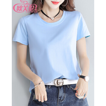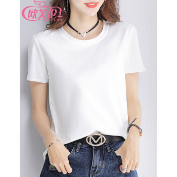欧芙伦纯色短袖t恤女新款夏季简约时尚圆领宽松体恤上衣潮3162 白色 M |