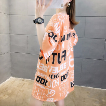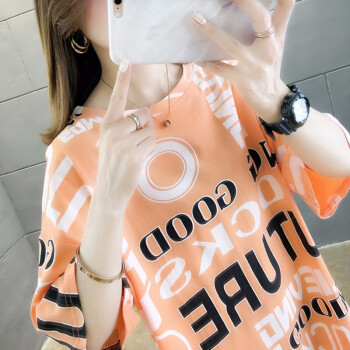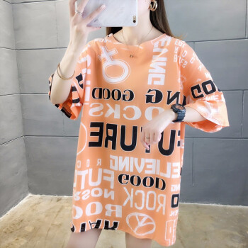 凝拉t恤女短袖纯棉新款夏装中长款韩版宽松大码欧货潮上衣服半袖体恤 桔色 2XL(建议150-170斤) |