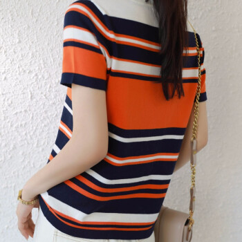 凝拉短袖T恤女纯棉夏季新款女装上衣韩版时尚气质宽松大码显瘦圆领拼色条纹针织打底小衫 条纹 2XL(建议130-145斤) |
