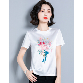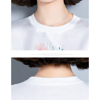 婪澈短袖T恤女女装夏季新款韩版时尚气质圆领印花衣服t恤女显瘦拼接上衣女 白色 请拍正确尺码 |