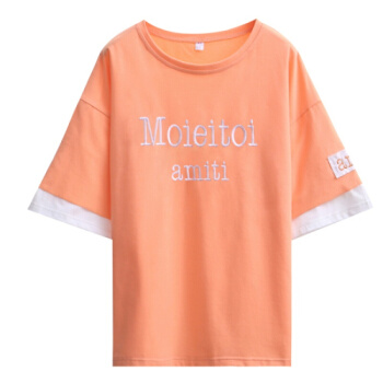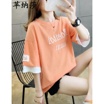 苹纳莎 短袖T恤女夏季新款时尚韩版宽松学生百搭时尚上衣打底潮 桔色 L (建议100斤-115斤) |