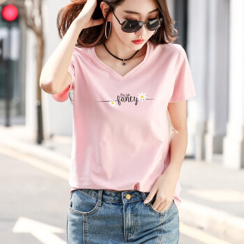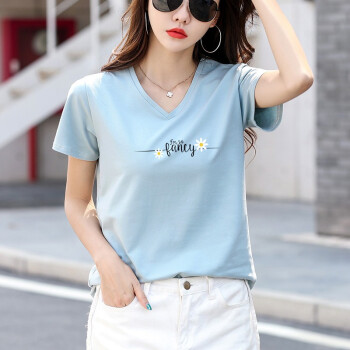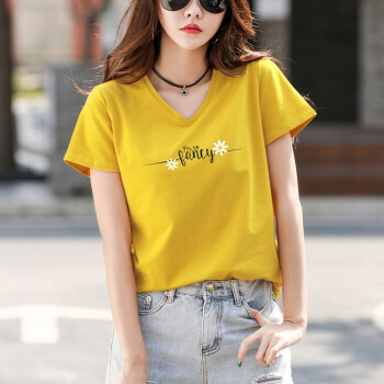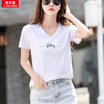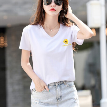 茵艾曼t恤女短袖宽松版夏季新款百搭韩版显瘦纯棉T恤女V领时尚网红潮小雏菊半袖体恤 7007V领白色 L《105-115斤》 |
