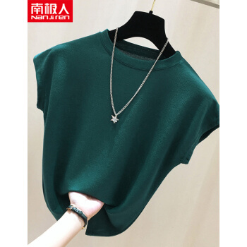 南极人 冰丝短袖t恤女夏装新款韩版时尚ins针织打底衫内搭宽松薄款上衣外穿体恤潮 N1-NRC402-1922-绿色 M |