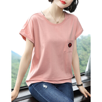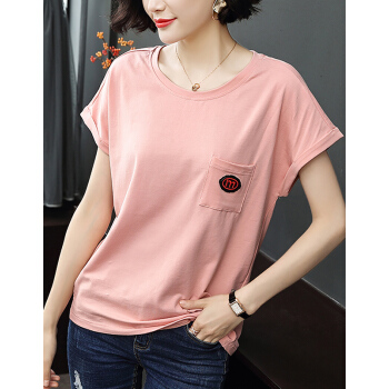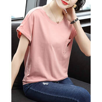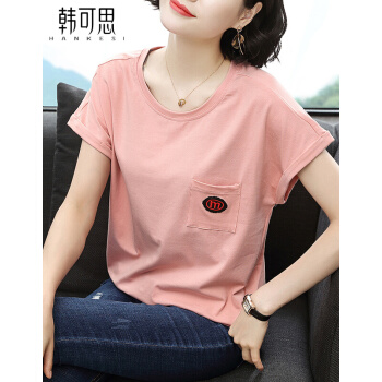 【精选好货】韩可思t恤短袖女夏装新款宽松显瘦中年妈妈棉粉色打底衫时尚小衫洋气百搭体恤夏 粉色 请拍正确尺码 |