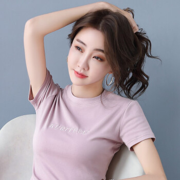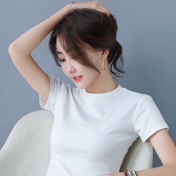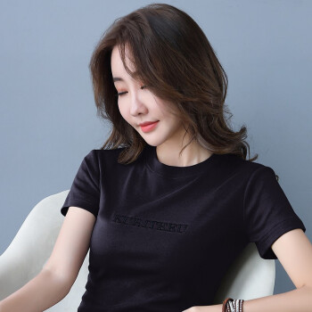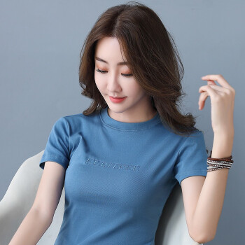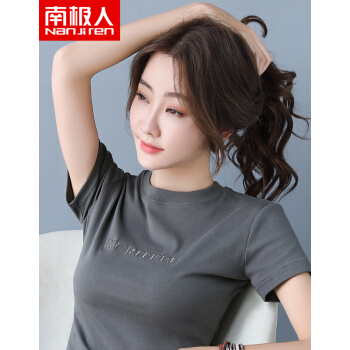 南极人 纯棉短袖t恤女春夏新款女装修身显瘦高弹力纯色简约百搭圆领多色可选刺绣字母上衣打底衫 深灰色 M |