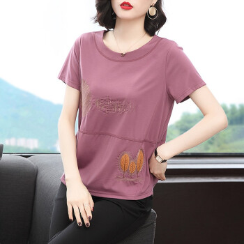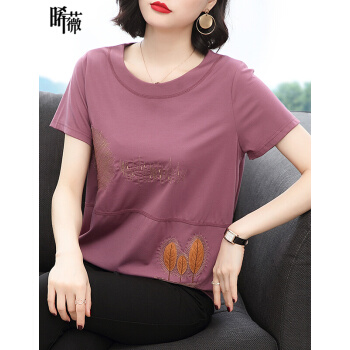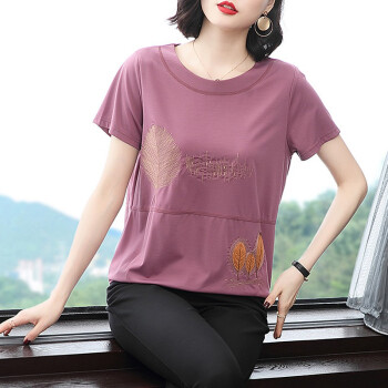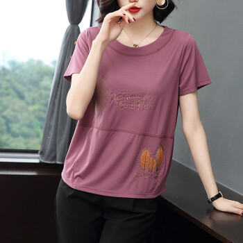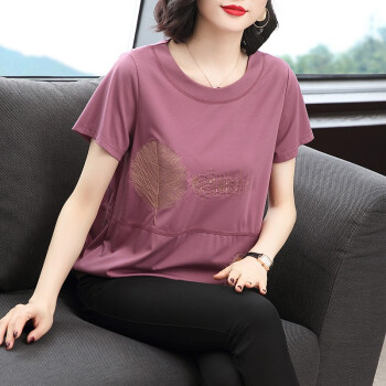 【精选好货】晞薇紫色宽松t恤女夏季新款短袖半袖女装夏装百搭体恤中老年妈妈装大码上衣女 紫红色 请拍正确尺码 |