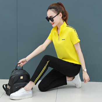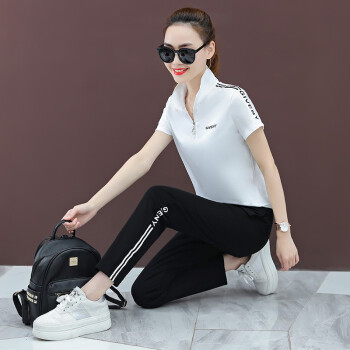 麦潮尚短袖T恤女运动套装女夏季新款立领宽松运动服短袖休闲两件套 红色 S建议70斤内 |