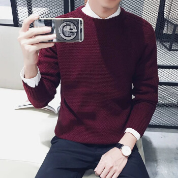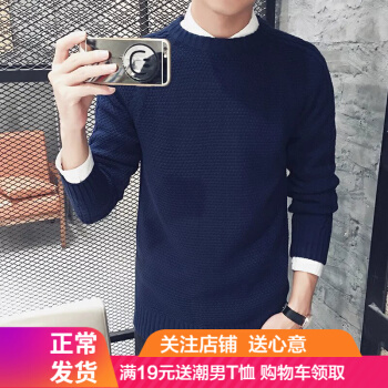 琛倪秋冬季新款套头纯色低领半高领毛衣男韩版潮流青少年学生时尚百搭针织衫打底衫 深蓝色 M |