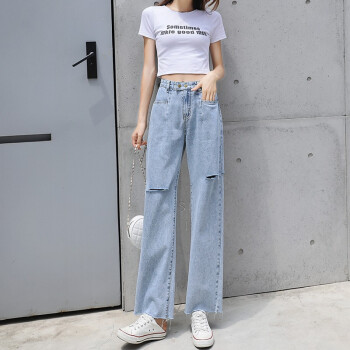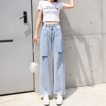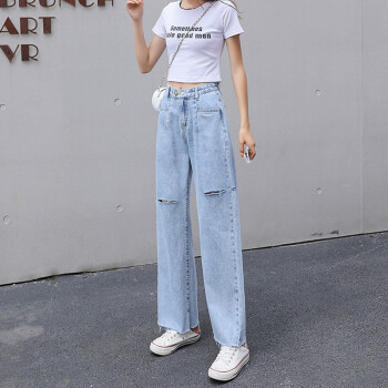 牛仔裤女夏季新款薄款九分裤子直筒宽松破洞韩版高腰垂感休闲潮流显瘦哈伦阔腿裤百搭网红修身老爹裤萝卜裤 9211九分裤 M码 |
