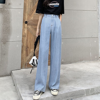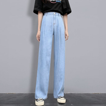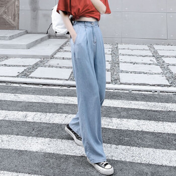 【精选女裤】Hizze天丝牛仔阔腿裤女裤子夏季新款薄款宽松百搭直筒高腰垂感冰丝超薄夏天长裤 复古蓝【拖地裤】 请拍正确尺码 |