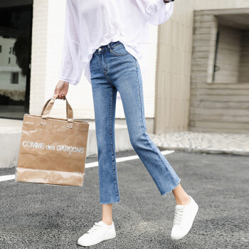 P.E.K.D 夏季九分牛仔裤女直筒宽松弹力网红韩版显瘦毛边小个子八分裤 蓝色-九分裤 28 |