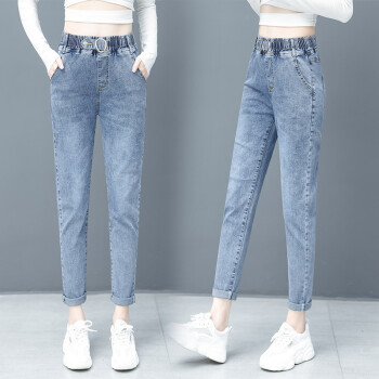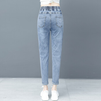 吧吆吆休闲牛仔裤女夏季新款高腰女装宽松直筒哈伦裤百搭薄款天丝九分裤女裤小脚裤子潮 浅蓝夏款 28 |