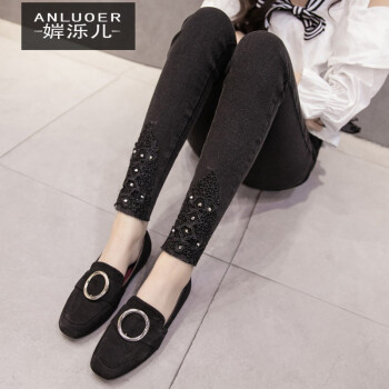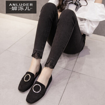婩泺儿牛仔裤女初秋装新款牛仔裤女加大码女装牛仔裤胖mm高腰显瘦弹力小脚裤长裤子休闲裤 (9274#蕾丝花边)现货 XL(100-120斤) |