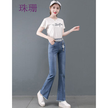 珠珊高腰牛仔裤女春秋新款裤子女装阔腿裤拖地裤女长裤直筒裤大码女装垂感休闲裤女 109-蓝色 29码(建议110-120斤左右) |