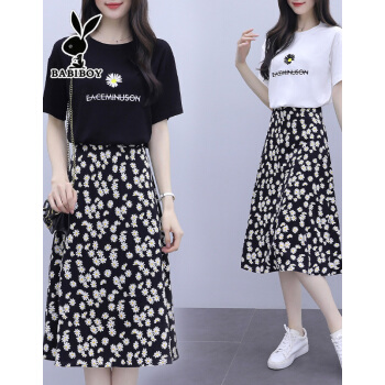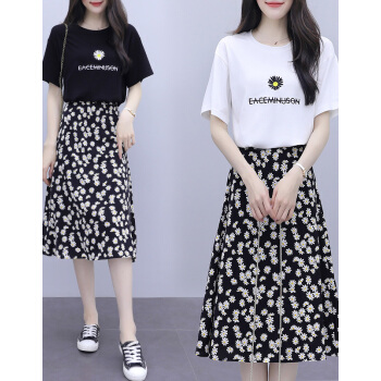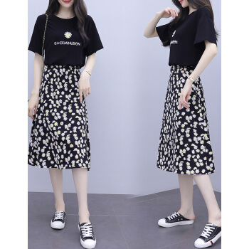 BABIBOY 半身裙套装女夏季新款韩版连衣裙中长款两件套套装裙小个子修身显瘦时尚减龄裙子 黑色 M |