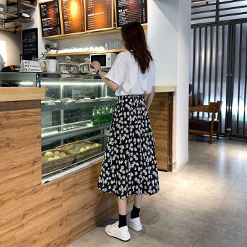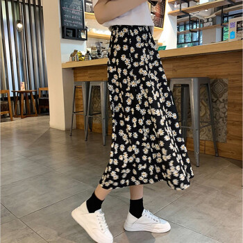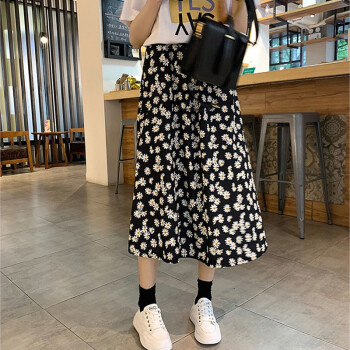 阅樱半身裙女中长款 新款女裙雪纺半身裙夏学生小雏菊韩版松紧腰高腰碎花裙下半身裙子蓬蓬裙伞裙 图片色 均码(85-130斤) |