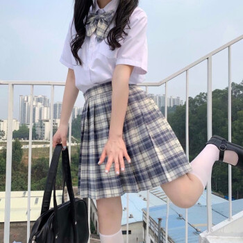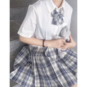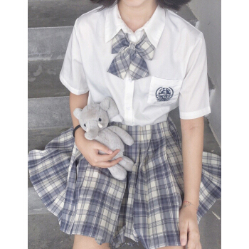 电竞少女jk制服温柔一刀格裙套装连衣裙中牌制服馆裙子学生校服百褶裙兔姬舍短裙A字裙包臀半身裙夏女 (格纹裙+刺绣上衣+领结)#1600 M |
