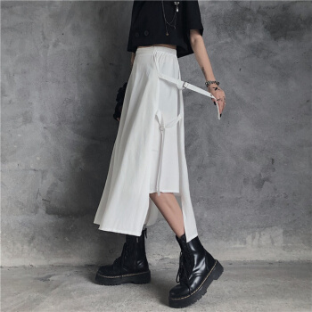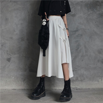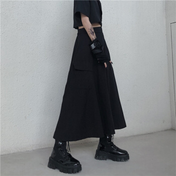 格洛基不规则半身裙女春夏新款ins火原宿风高腰A字长裙复古显瘦工装裙 黑色 M |