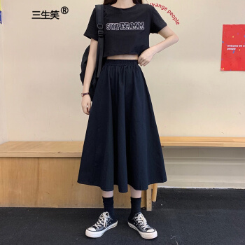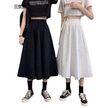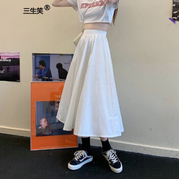 三生笑 白色半身裙女长裙夏季新款韩版高腰a字裙显瘦学生中长款裙子 白色 均码 |