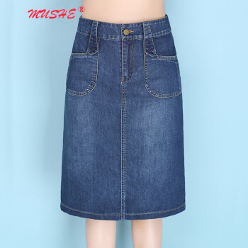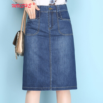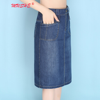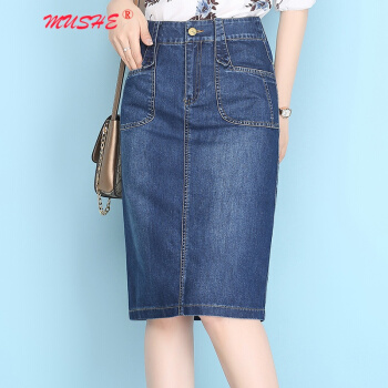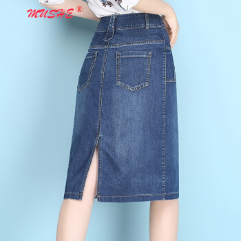 MUSHE原创轻奢 牛仔半身裙女夏季新款时尚百搭高腰显瘦简约舒适开叉中长款一步包臀裙 蓝色 L |